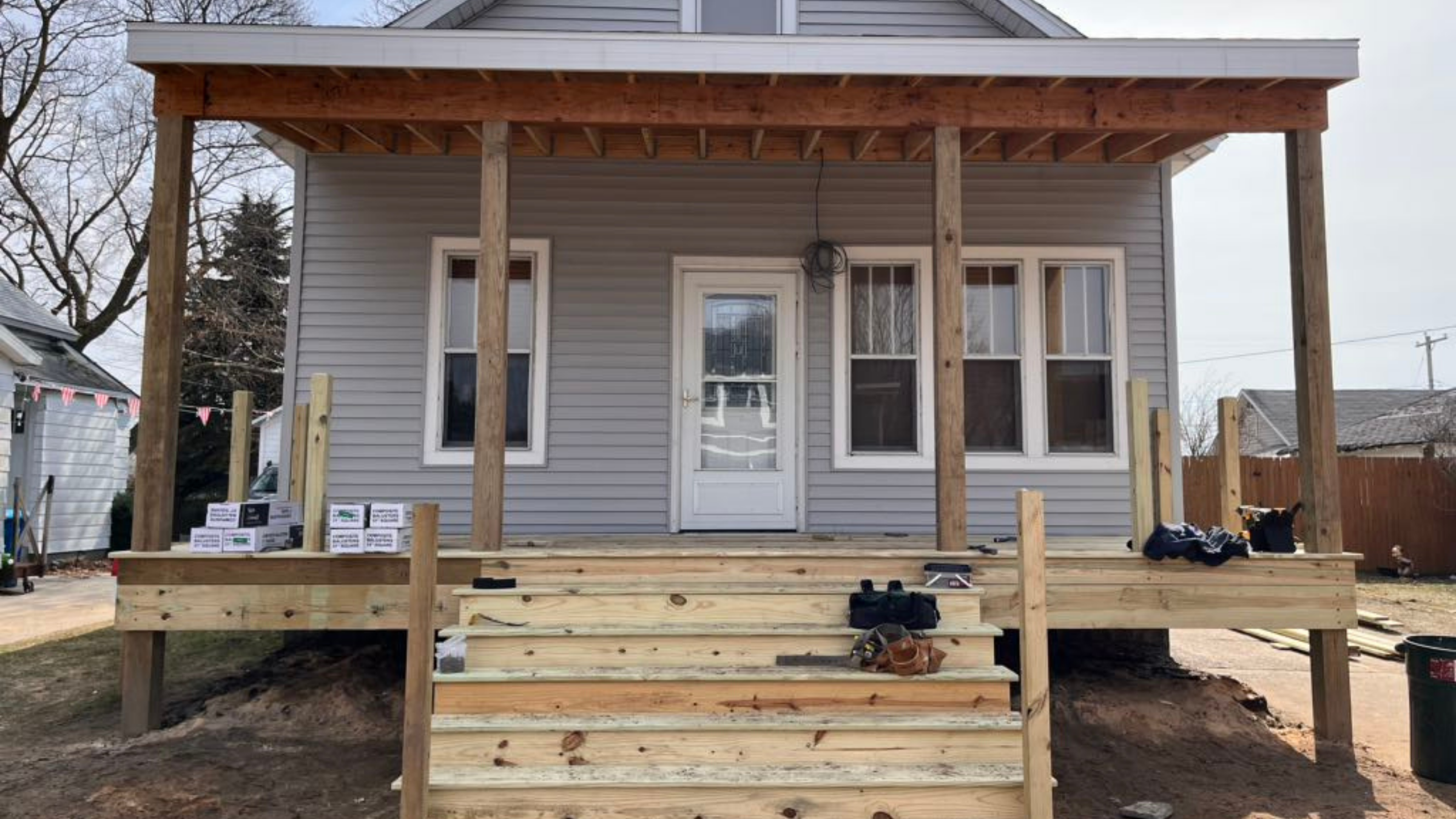 What was once a simple entryway is now a functional, social hub for the family. The new front deck adds both practical space and aesthetic appeal, turning a small, underused area into a place where people want to gather, relax, and make memories!